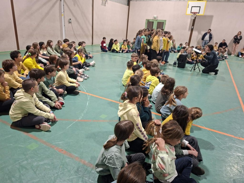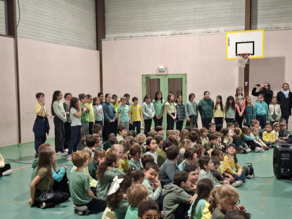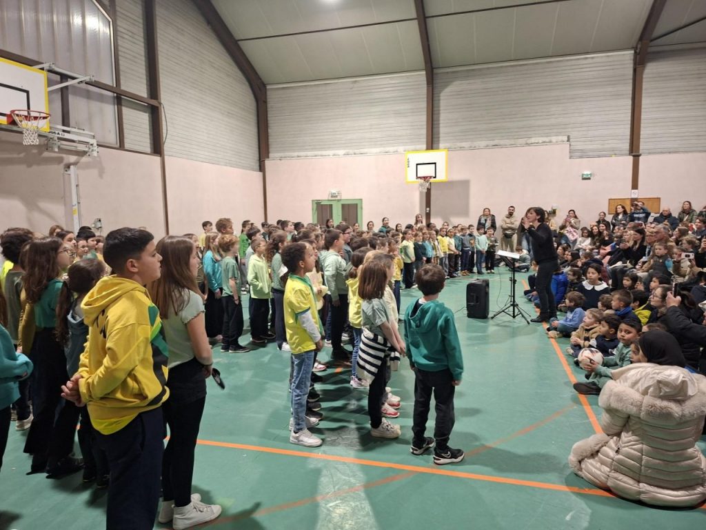 Le mardi 3 Mars et le lundi 9 Mars se sont déroulées les représentations en Musique au gymnase du Bourg. Après les séances en classe et une répétition générale le jour J, c’est avec joie que tous les élèves de l’école ont pu montrer leur travail devant de très nombreux parents. Un grand merci à tous pour votre enthousiasme et bravo à tous les petits chanteurs du Bourg !